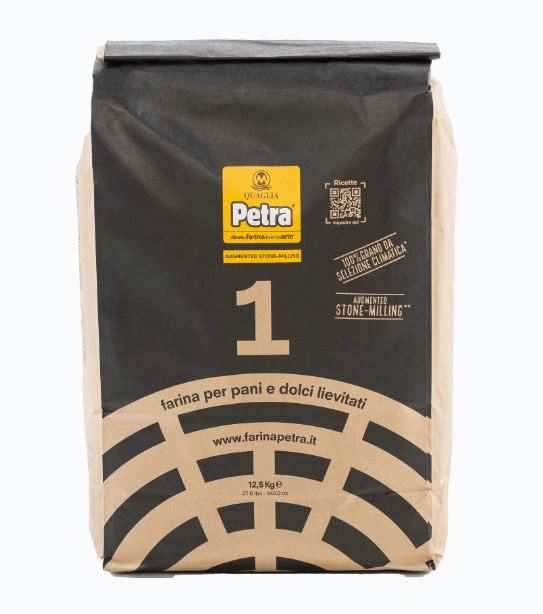 La Petra 1 è una farina di grano tenero 100% da selezione climatica, macinata a pietra con l'innovativo processo augmented stone milling per una selezione ottica perfetta del grano e la setacciatura e calibrazione controllata nell'impianto molitorio industriale più avanzato d'Italia. Una farina più completa fonte di fibre nobili e con un contenuto equilibrato delle parti diverse del chicco.