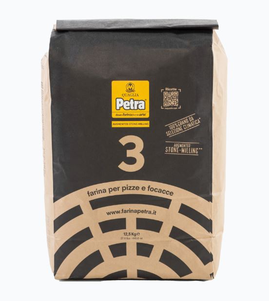 La Petra 3 è una farina di grano tenero 100% da selezione climatica, macinata a pietra con l'innovativo processo augmented stone milling per una selezione ottica perfetta del grano e la setacciatura e calibrazione controllata nell'impianto molitorio industriale più avanzato d'Italia. Una farina più completa fonte di fibre nobili e con un contenuto equilibrato delle parti diverse del chicco.